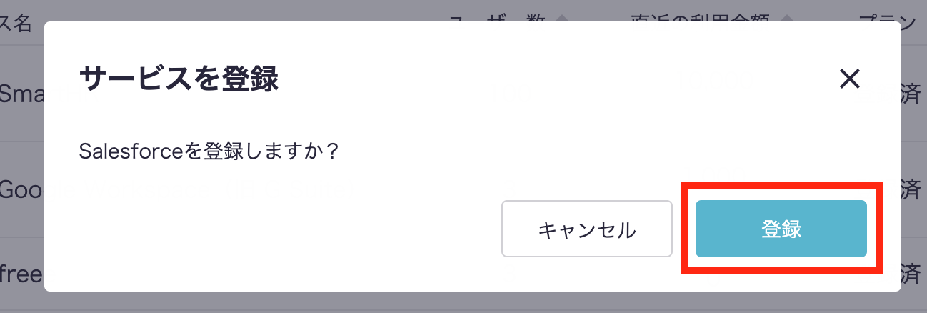 登録確認のモーダルが出現するので、『登録』ボタンを押下します。