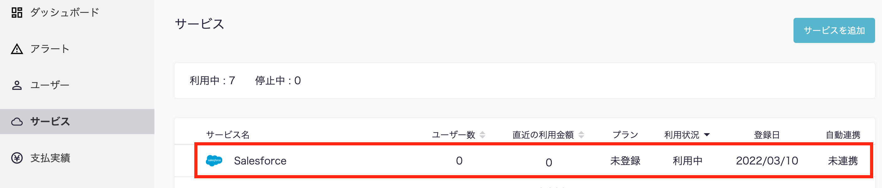サービス一覧画面に戻りますので、その中から『Salesforce』を選択します。