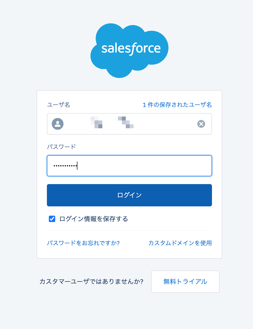 Salesforceアカウントのログインを求められるので、連携したいアカウントのメールアドレス、パスワードを入力しログインします。