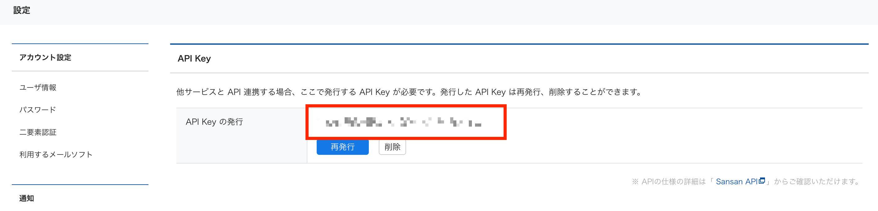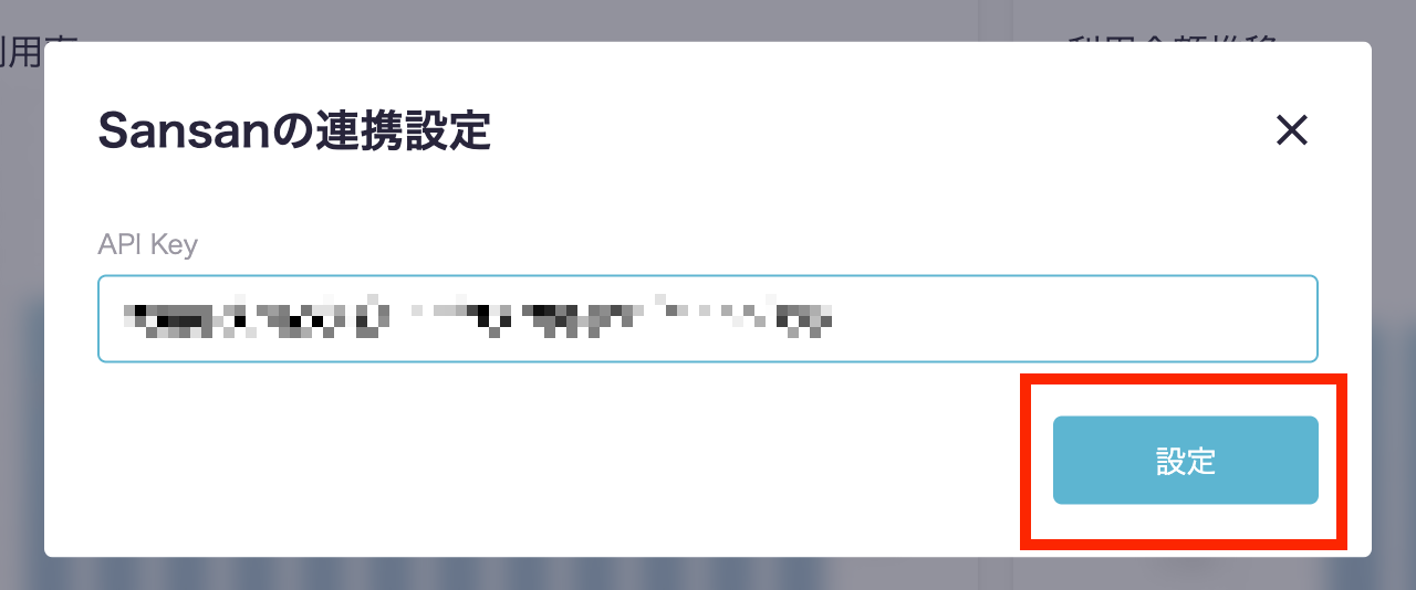Sansanの連携設定モーダルが出現するので、API Keyを入力し『設定』ボタンを押下します。