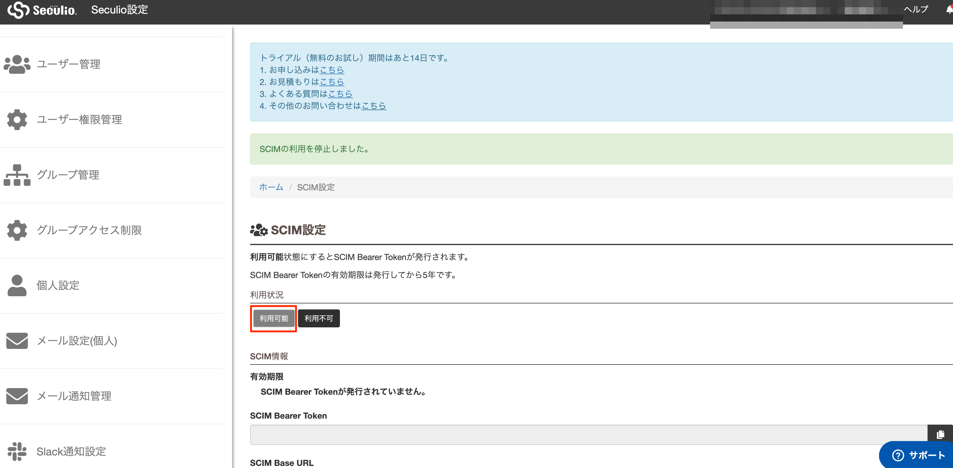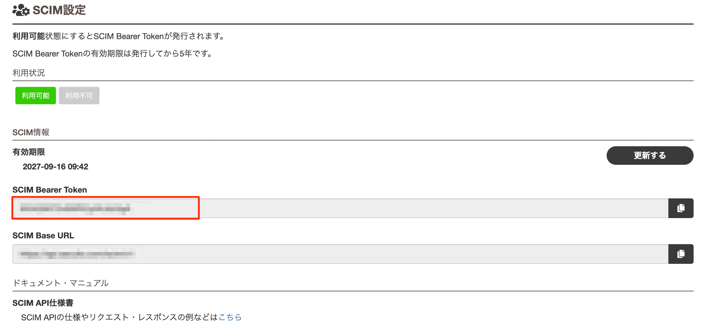 SCIM Bearer Tokenが発行されるのでコピーし保管します。
