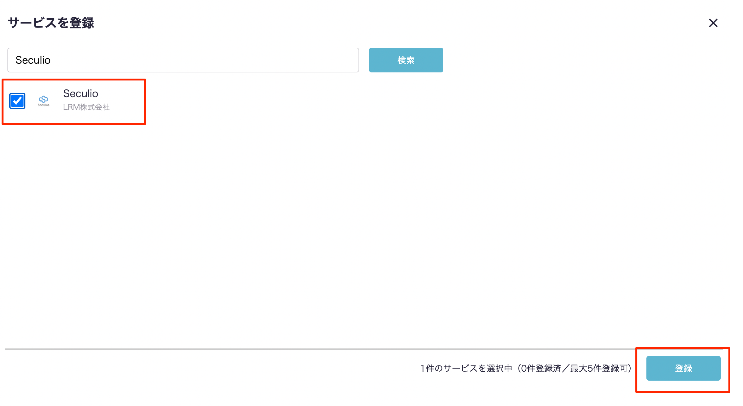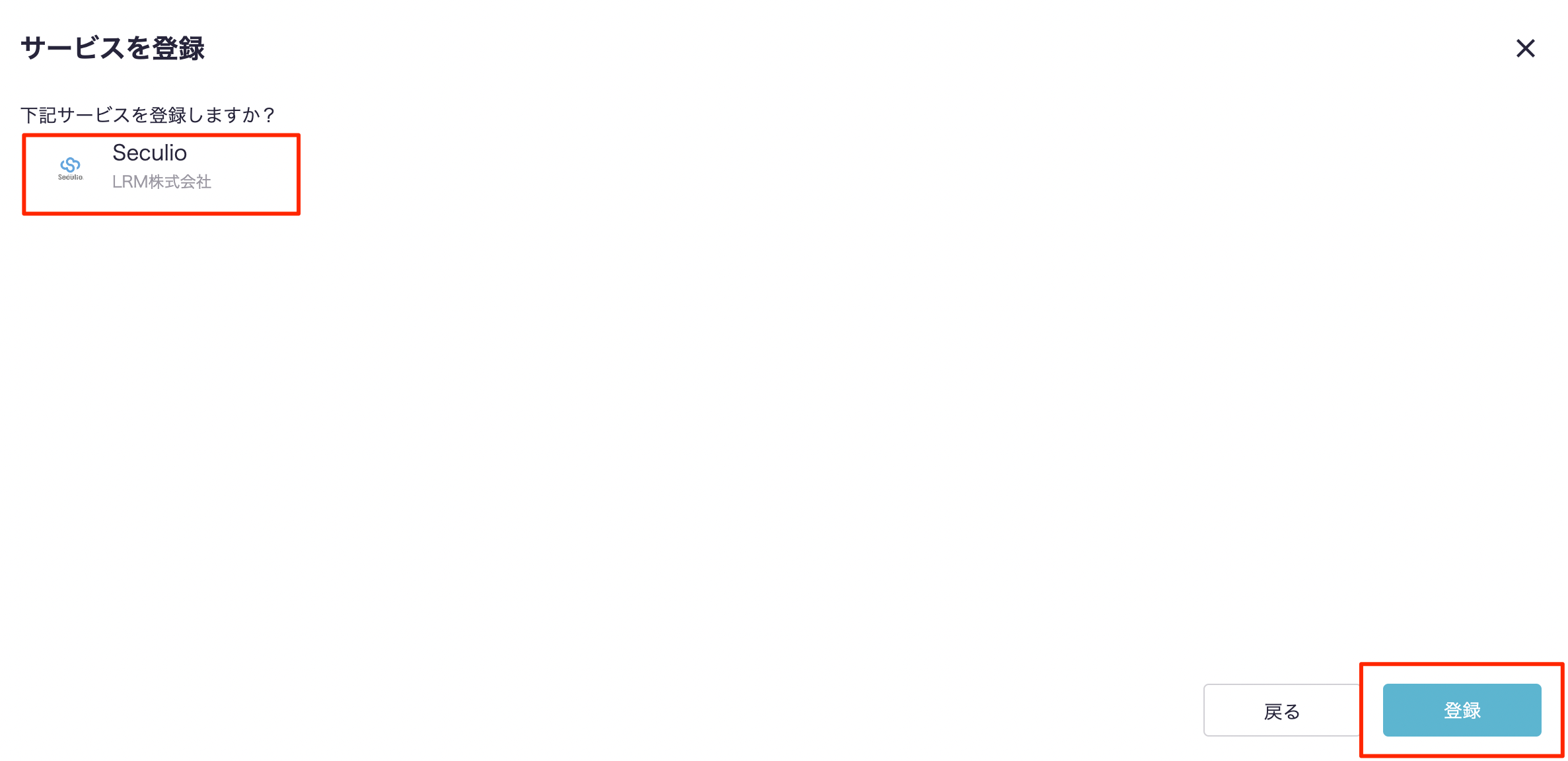 その後、下画像のようなモーダルが出現しますので、入力欄にサービス名である「Seculio」と入力します。