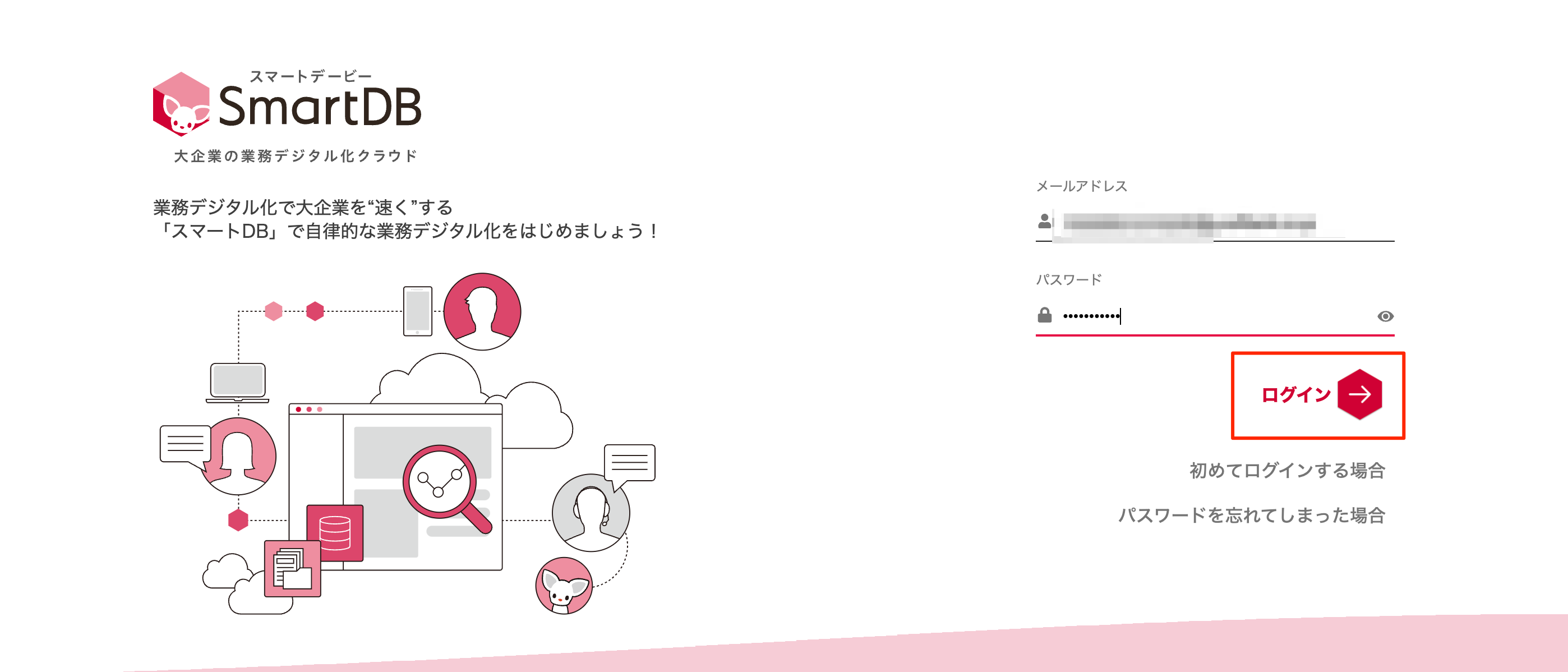 ※サブドメインは 1.SmartDBにログインをする でコピーしたサブドメインを入力して下さい。