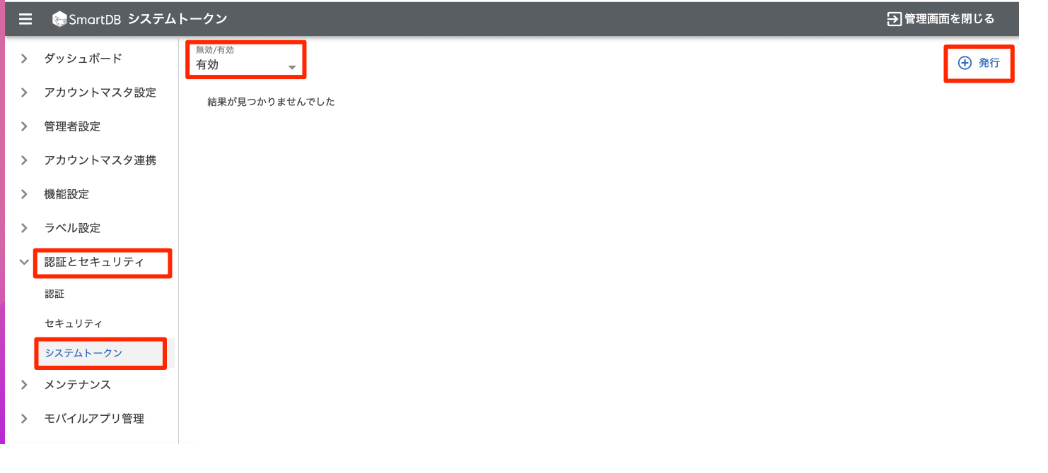 サイドバーの『認証とセキュリティ』を選択し、『システムトークン』を押下します。