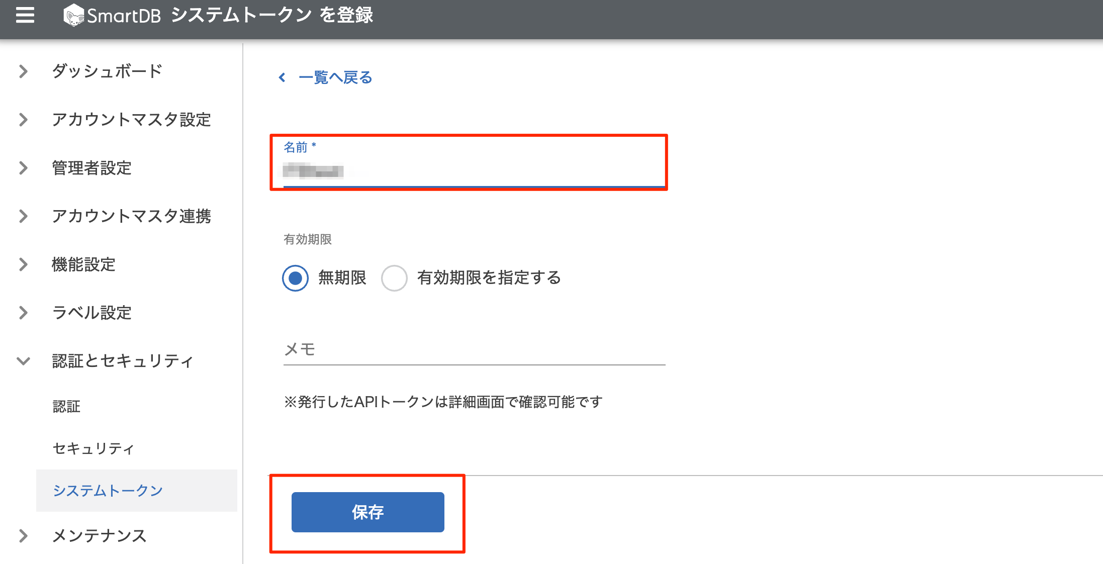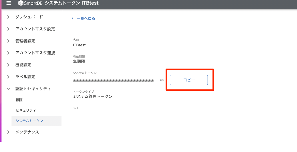 ※API Keyは 2.システムトークンを作成する でコピーしたシステムトークンを入力して下さい。
