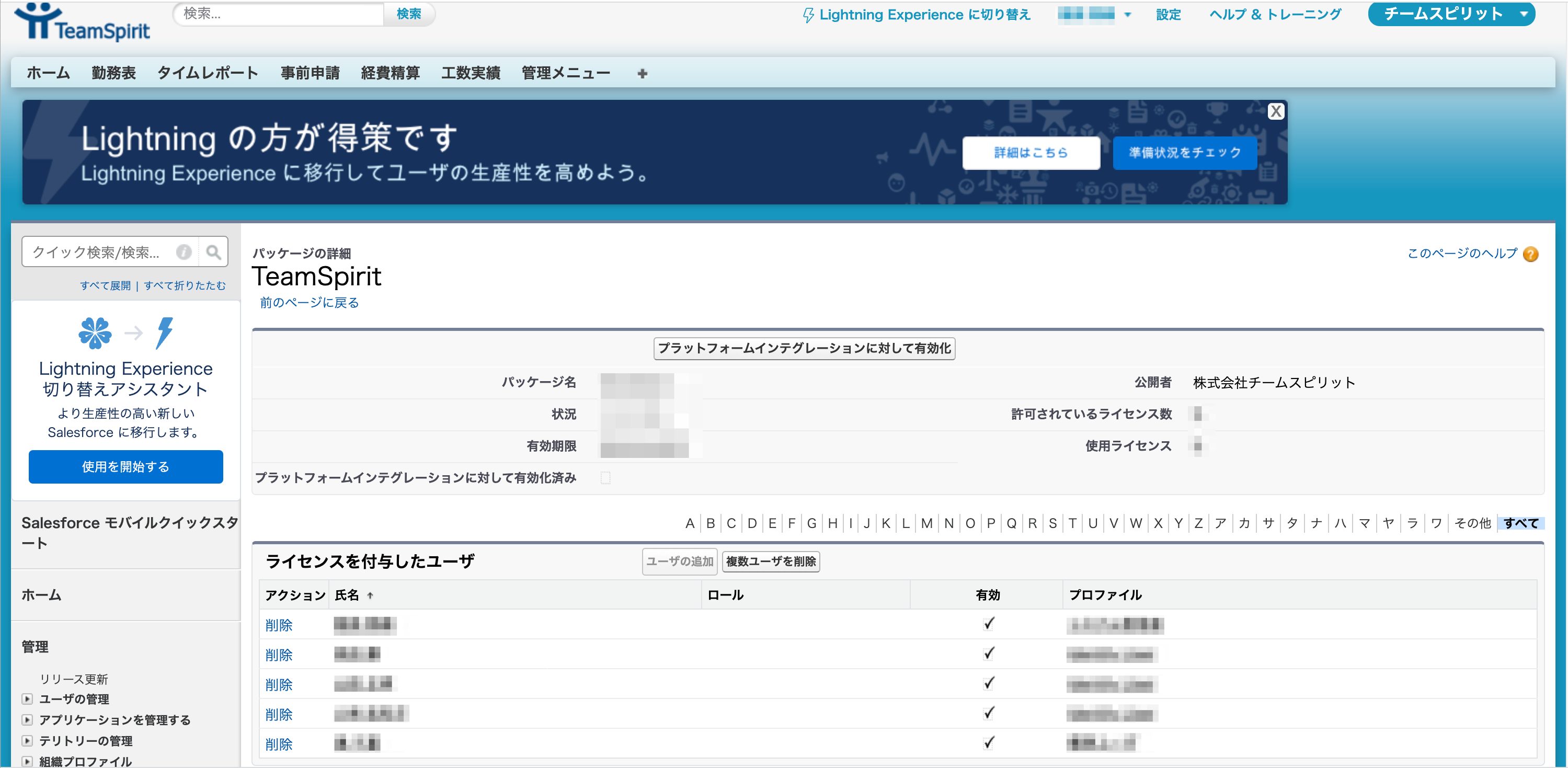 4. サービス登録に成功すると、TeamSpiritのサービス詳細画面に遷移します