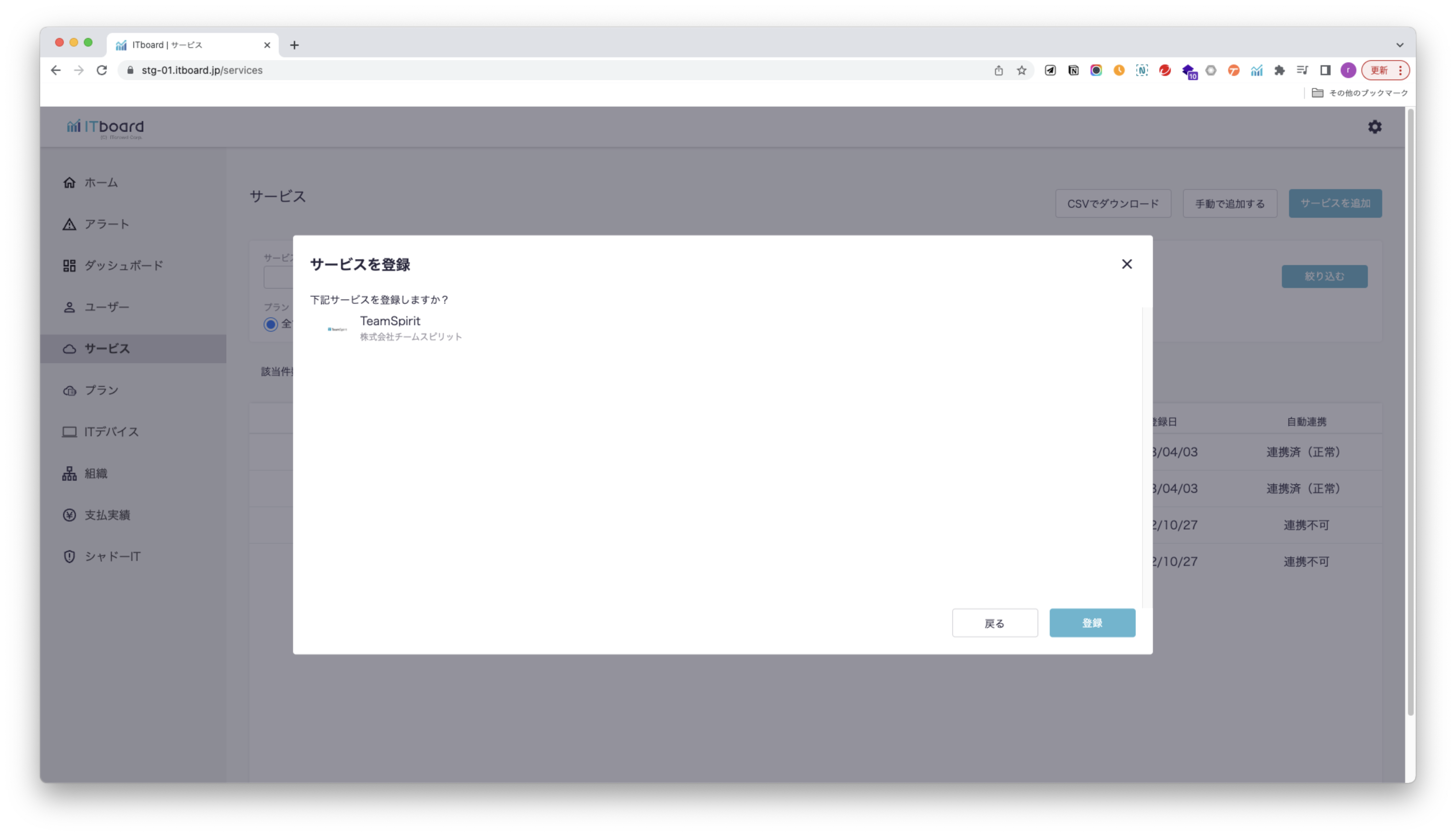 3. ITboardに移り、ITboardからTeamSpiritをサービス登録します