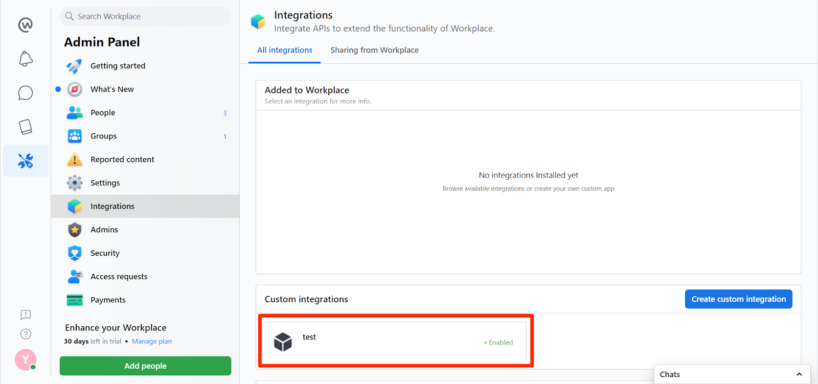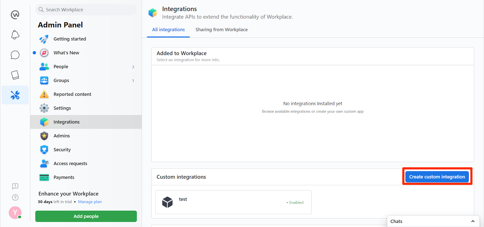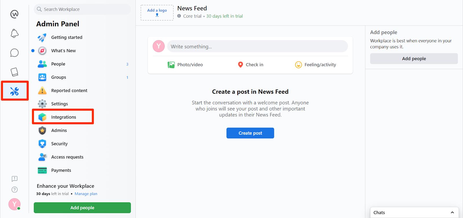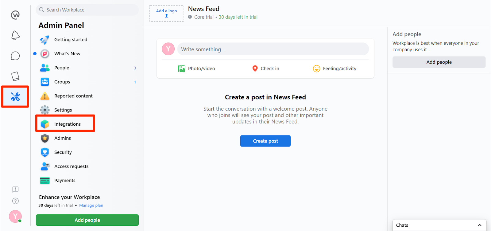 左サイドバーの『Admin Panel』から『Integrations』を選択します。