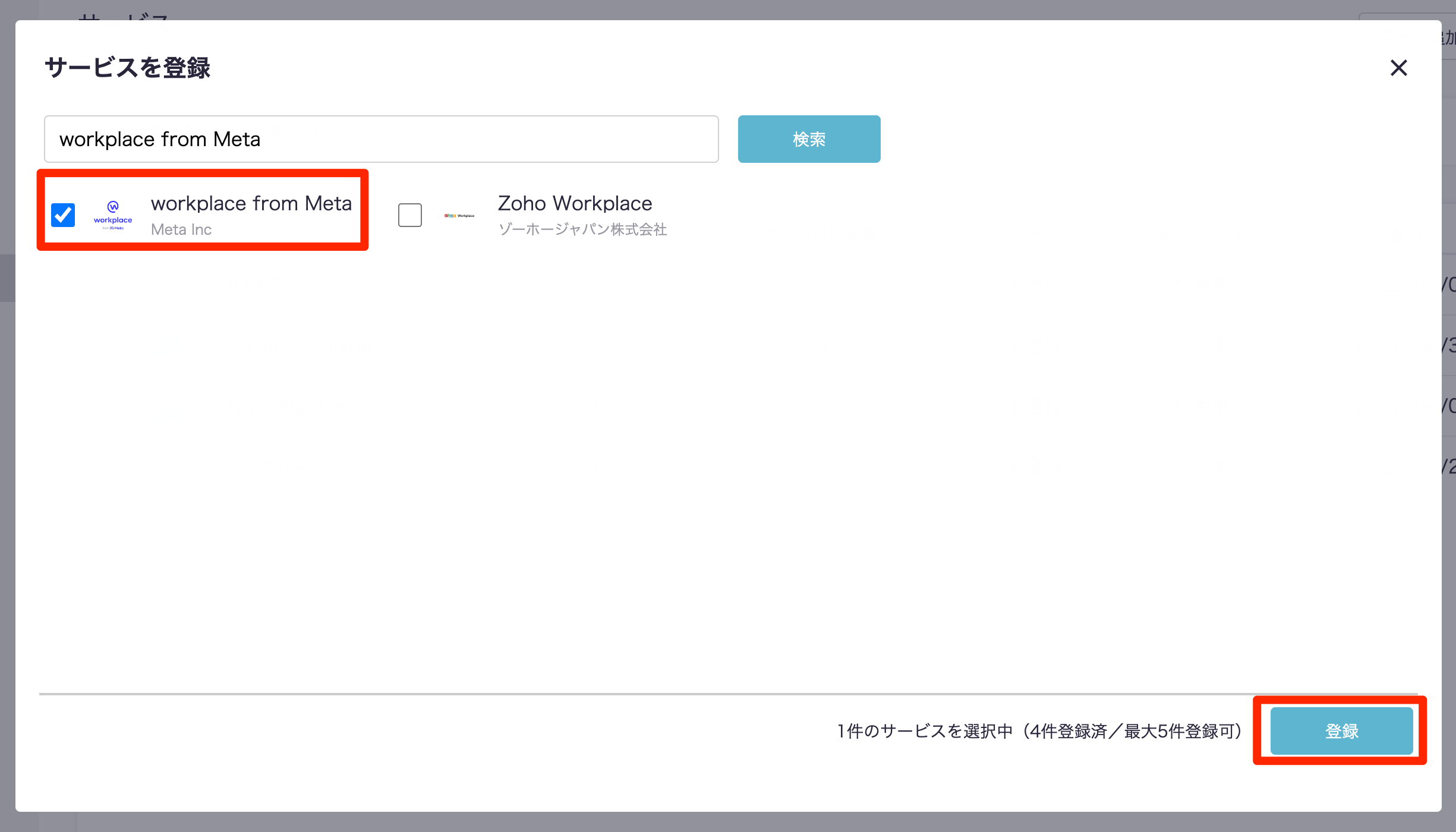 5.ITboardでサービス選択からworkplace from Metaを追加する