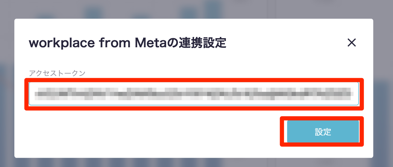 workplace from Metaの連携設定モーダルが出現するので、「アクセストークン」を入力し『設定』ボタンを押下します。