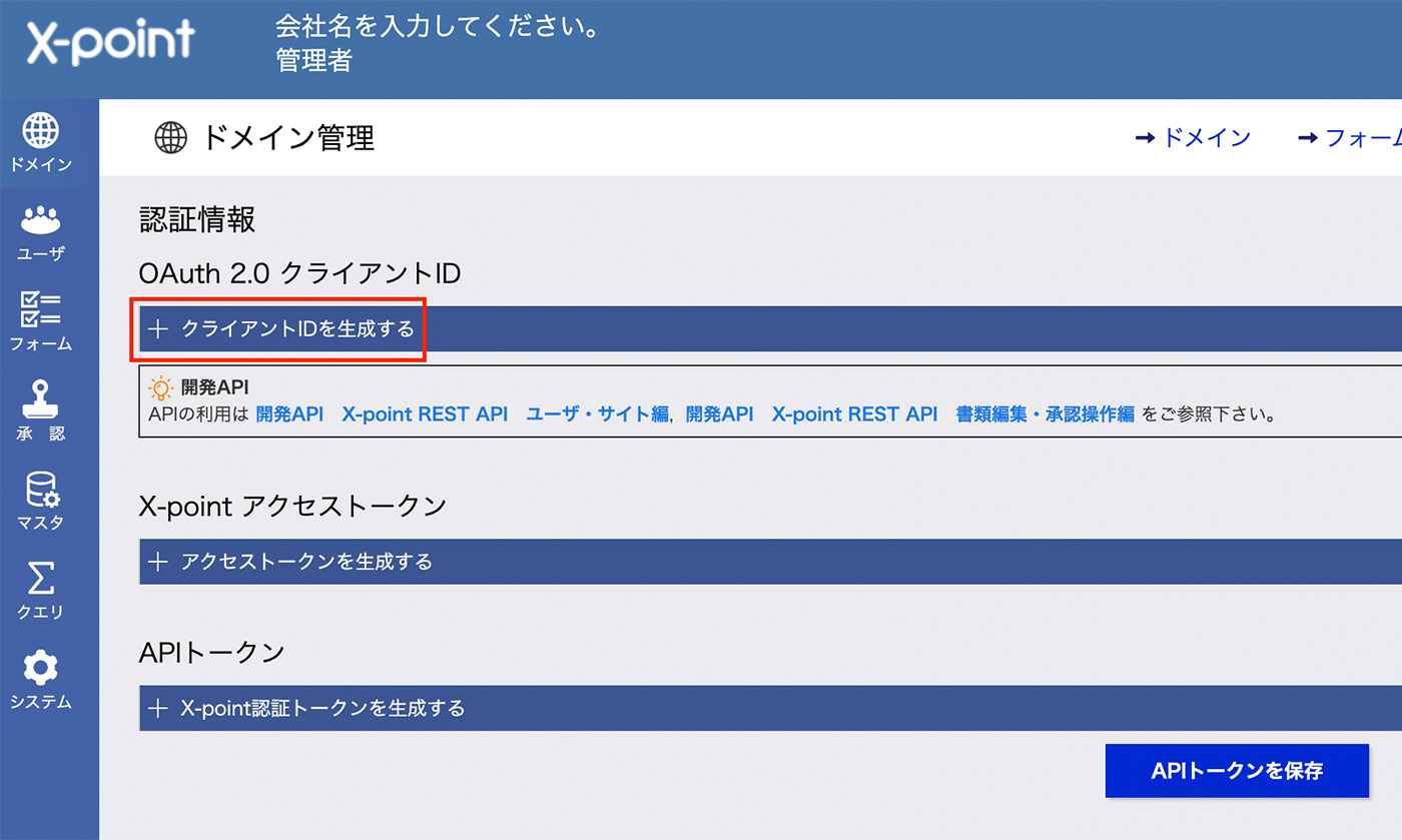 『+ クライアントIDを生成する』を押下し、クライアントIDを生成します。