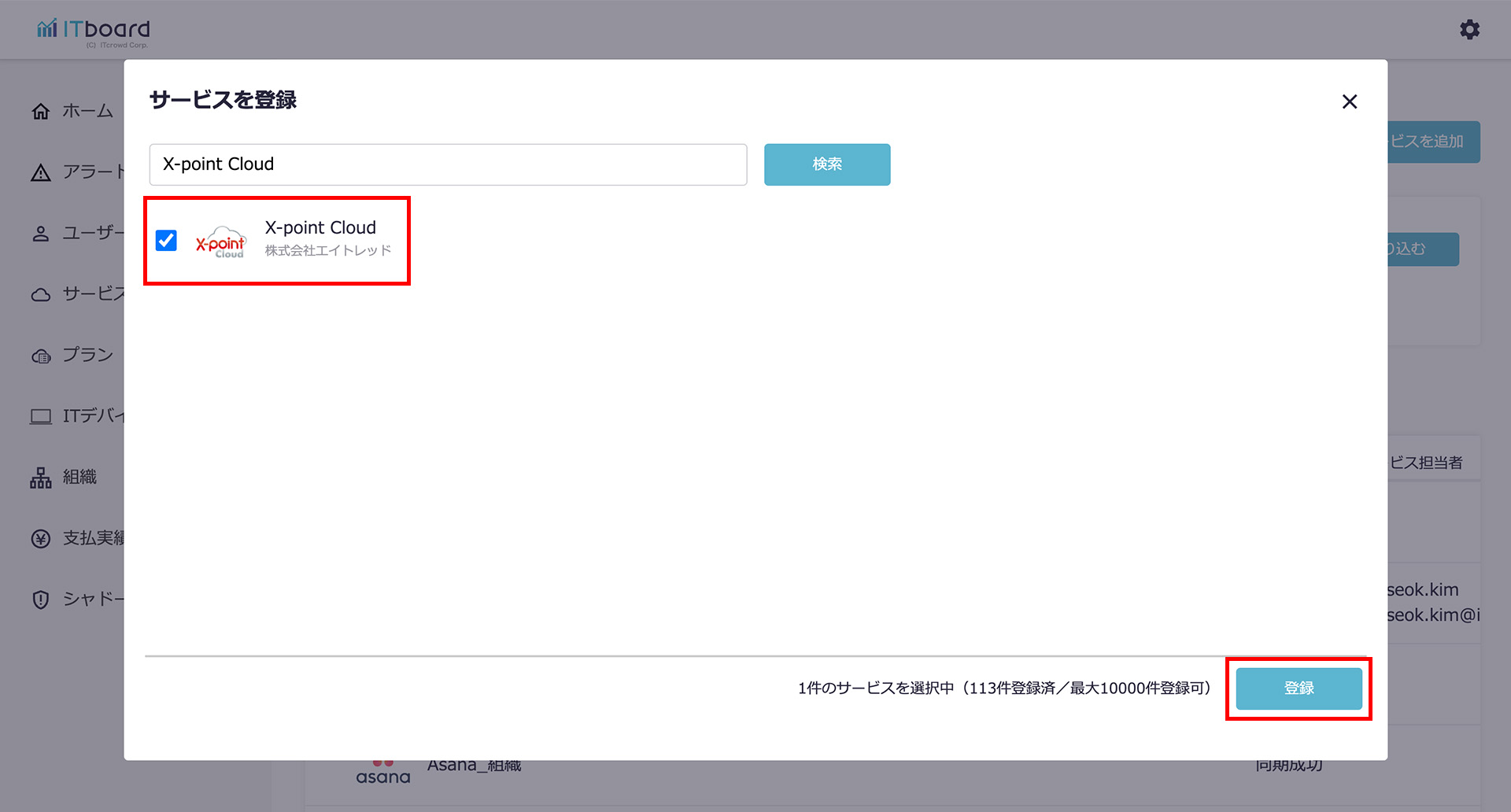 4.ITboardでサービス選択からX-point Cloudを追加する