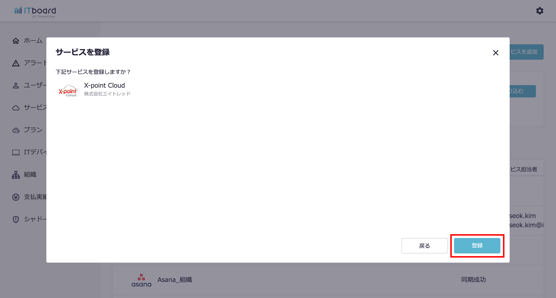登録確認のモーダルが出現するので、『登録』ボタンを押下します。